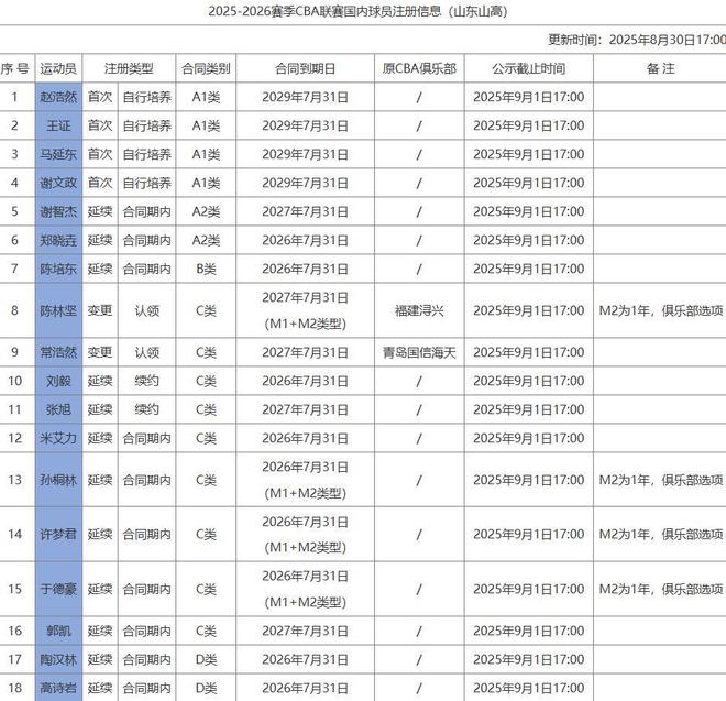 2025年8月30日CBA多支球隊的注冊獲得了更新,其中新疆青春風暴,現在他們已經注冊了14個人,其中殷召航、馮傲、張慶澤上調一隊,球隊存在了一半的年輕球員,這對于劉煒的壓力還是比較大的,他需要擔負起年輕球員的培養。