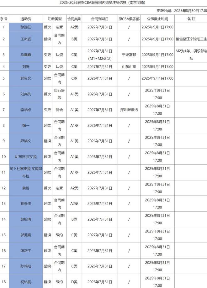 CBA注冊更新!同曦山東滿員,王嵐嵚租借剩2年,四川仍無動靜!